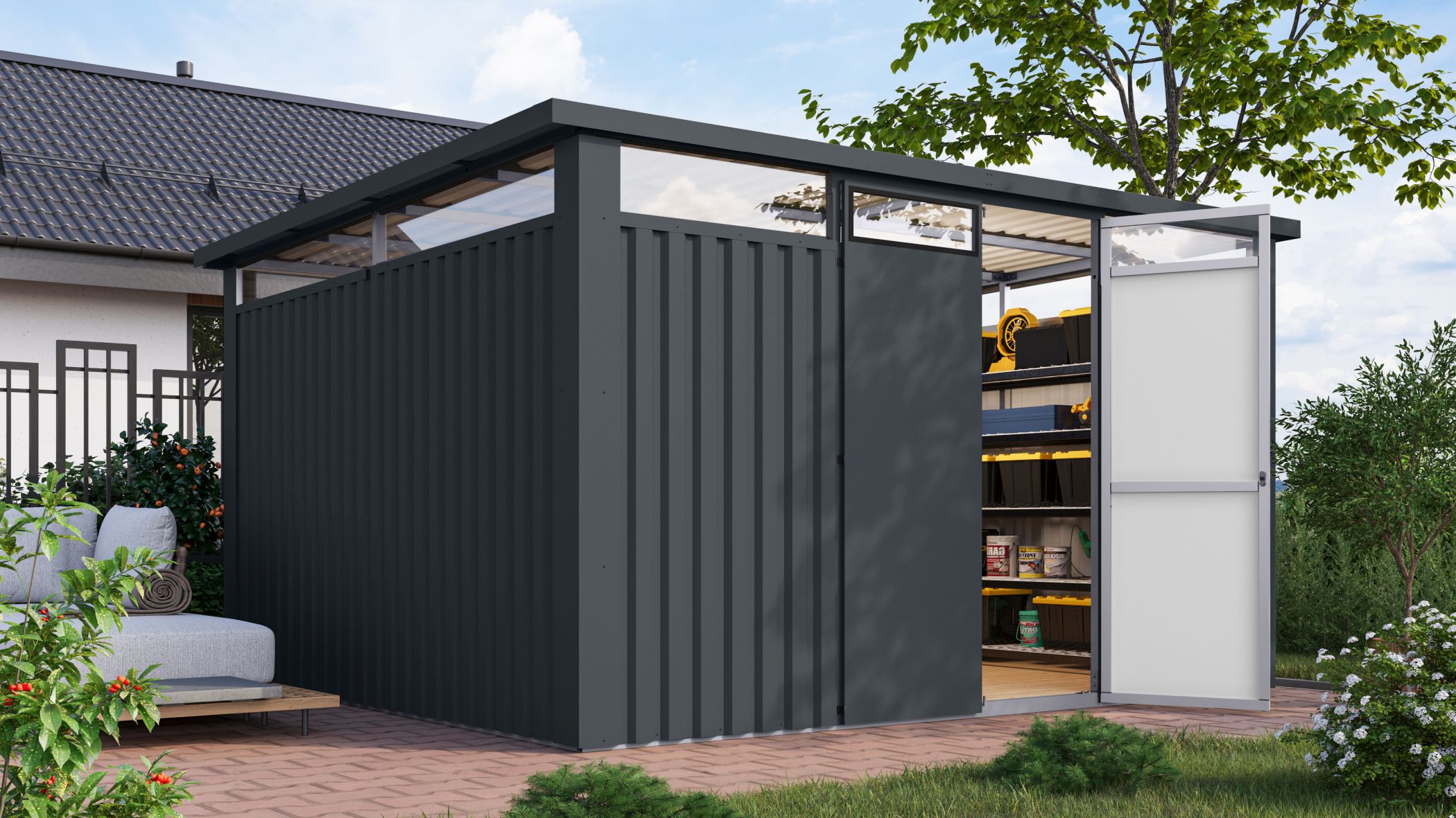 Een tuingereedschapsschuur uit Karibu