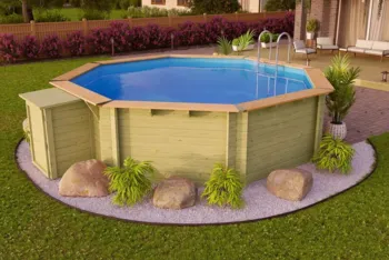 Plane auch Raum für etwaiges Zubehör ein. Eine Filteranlage und weiteres Zubehör für die spätere Poolpflege können in einem Technikraum mit Sonnenterrasse platzsparend und witterungsgeschützt aufbewahrt werden. Die Karibu-Modelle sind hierfür mit großen und kleinen Anbauterrassen ausgestattet, die später auch für ein ausgiebiges Sonnenbad genutzt werden können. Und vielleicht wünschen sich die Kinder auch noch eine Rutsche für den Pool? Überprüfe hierbei unbedingt die Kindersicherheit des Pools. Wertvolle Tipps dazu erhältst Du in unserem Beitrag Het zwembad kindveilig maken . - Beschaffenheit der Stellfläche