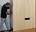 Als Nächstes werden die Wände je nach Aufbausystem montiert. Bei einer Elementbauweise werden die Wandelemente auf den Grundrahmen gesteckt und verschraubt. Die Bohlen der Massief houten sauna werden ineinander gesteckt und an den Eckleisten verschraubt. Bei einer Systeemsauna werden die fertigen Wandelemente aufeinander gesteckt und an den Ecken verschraubt.