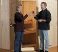 Damit die Wärme beim Saunieren nicht entweichen kann wird nun die Tür eingesetzt und am Rahmen verschraubt.