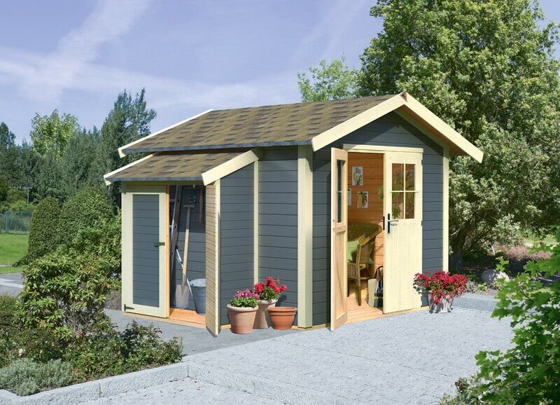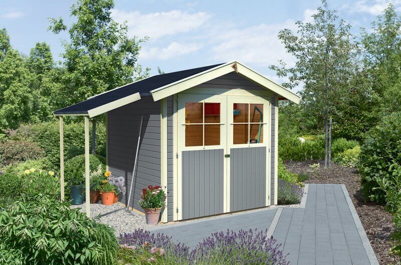 Wenn Du ein Gartenhaus kaufen und mit einem Schleppdach ergänzen möchtest, hast Du viele Möglichkeiten:
