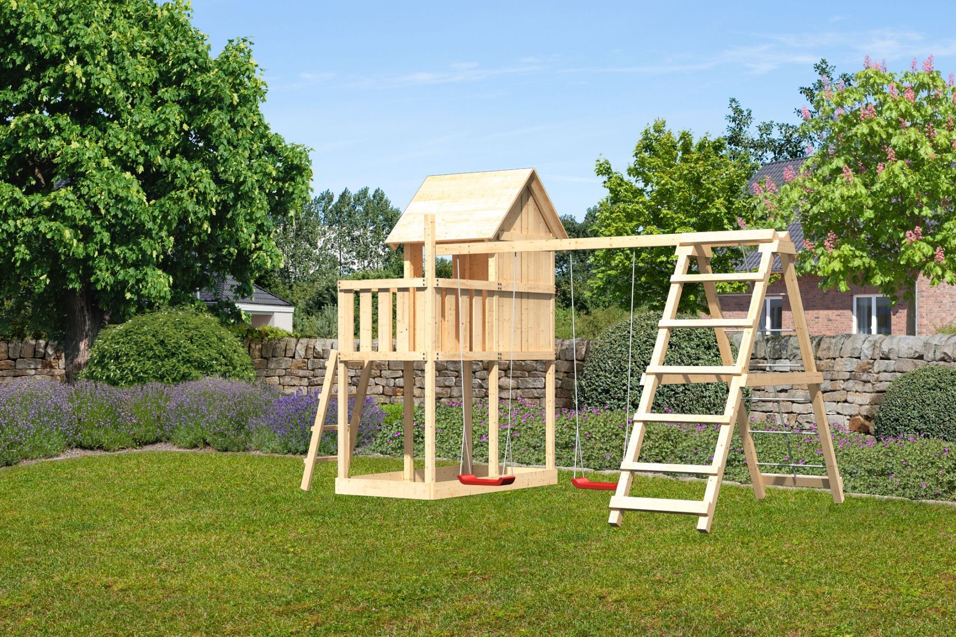 Für mutige junge Kletterer verspricht eine Kletterwand oder eine Holzrampe mit Klettertau zusätzliche Abenteuer und Bewegung. Beim Klettern lernen Kinder neue Bewegungsabläufe kennen, die ihre Motorik verbessern. Zudem machen sie die Erfahrung, Hindernisse durch eigene Anstrengung überwinden zu können, wodurch ihr Selbstbewusstsein gestärkt wird.